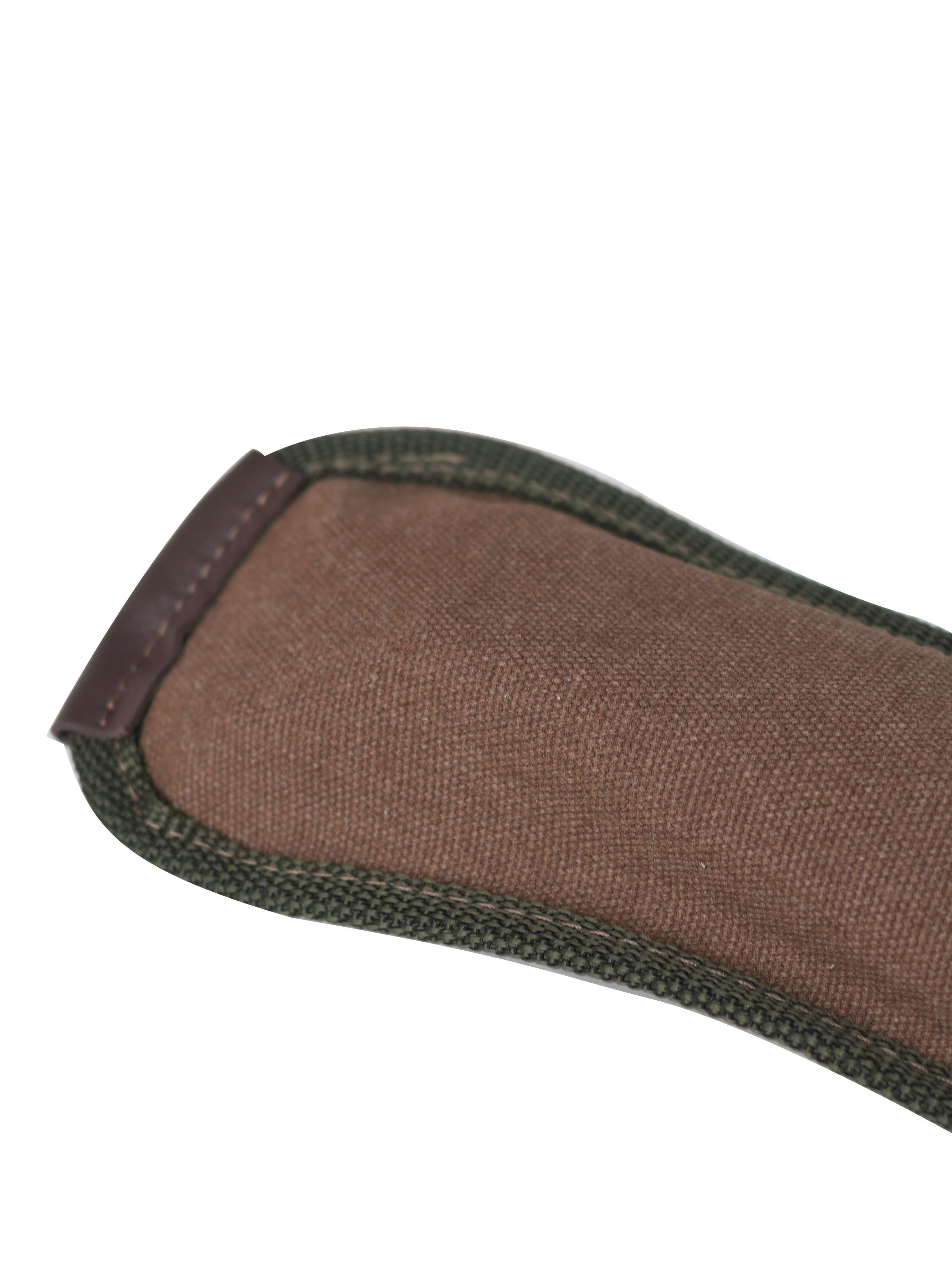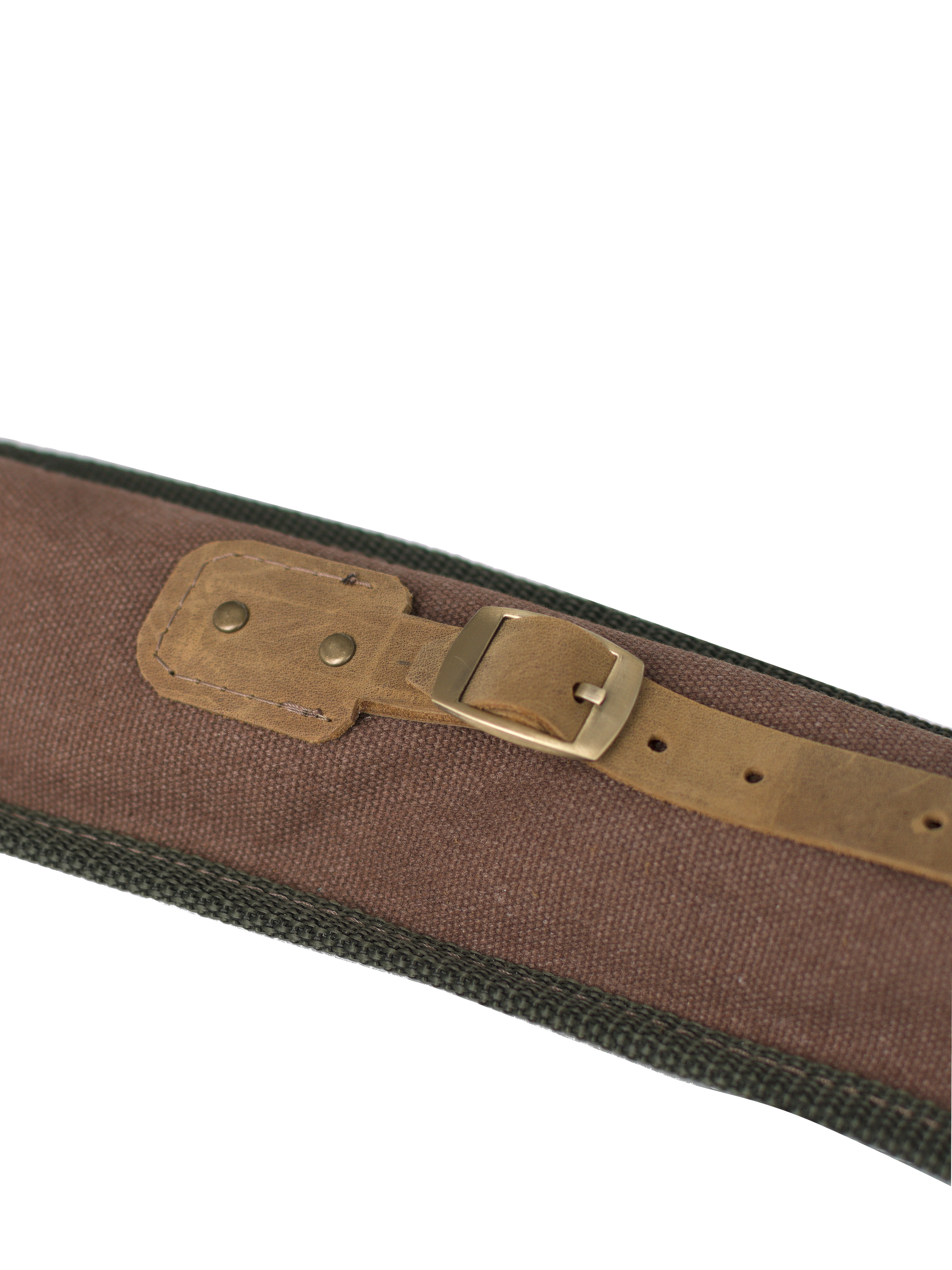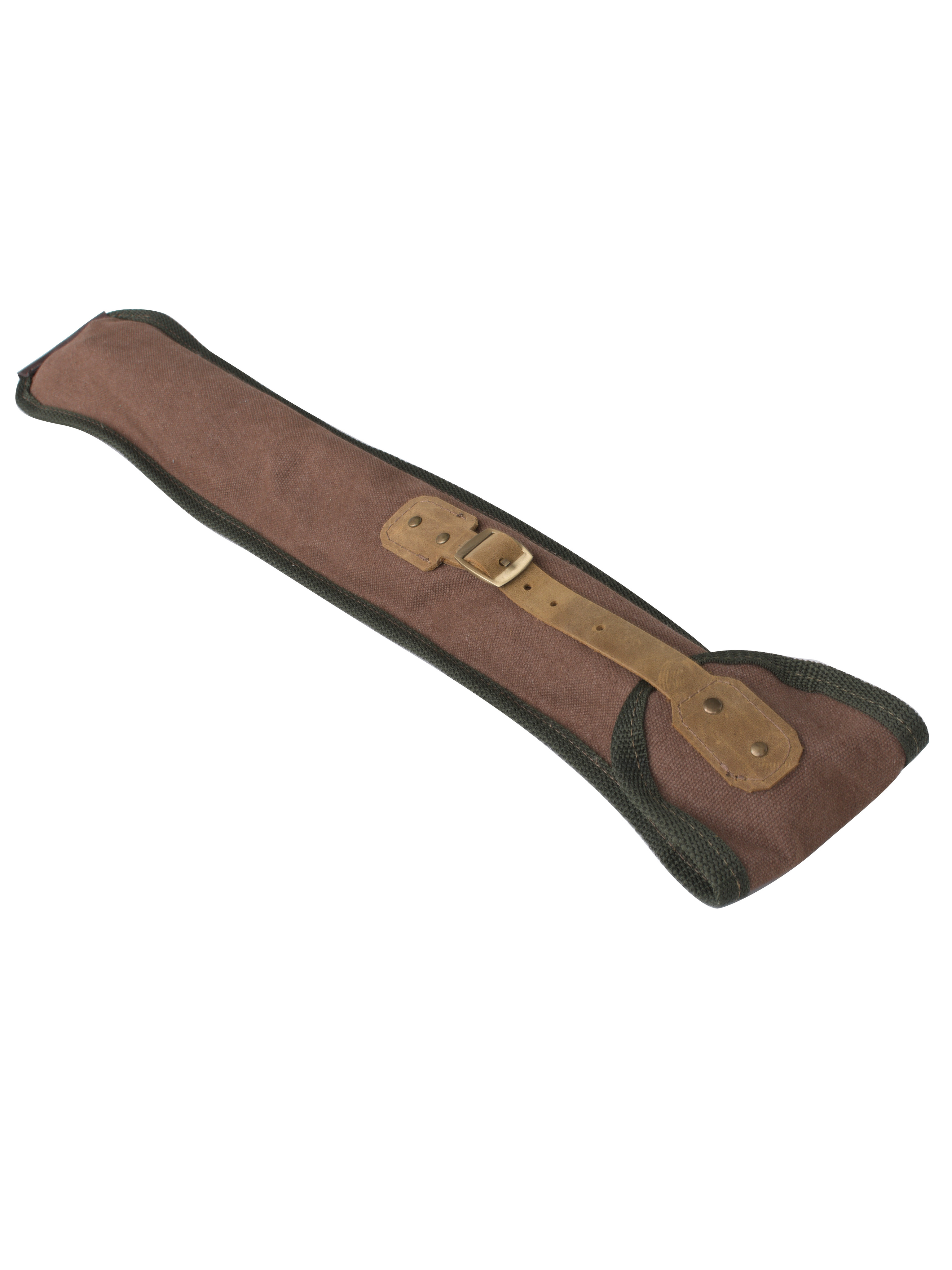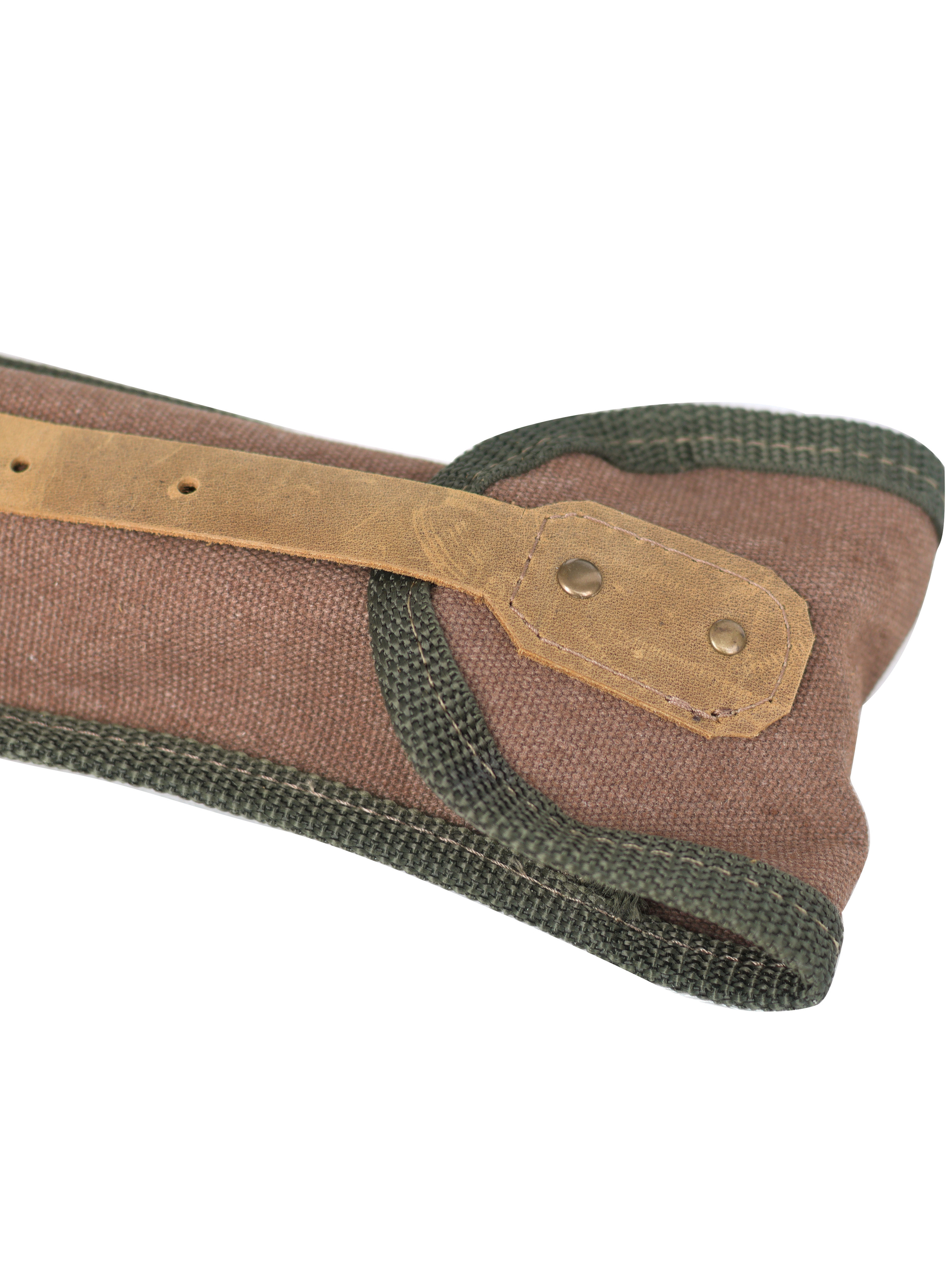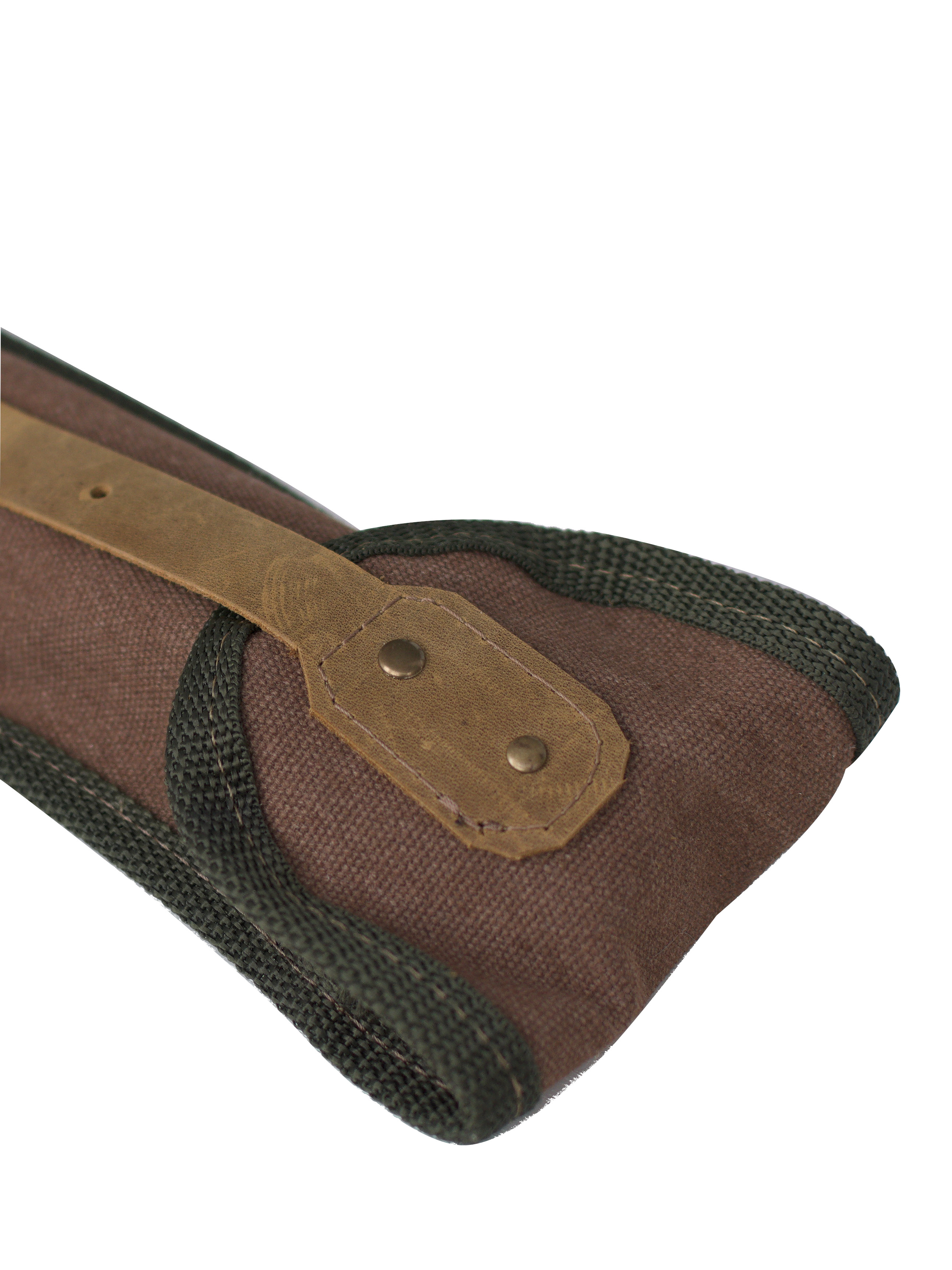 Чехол из канваса с фурнитурой из металла и кожаными застежками.