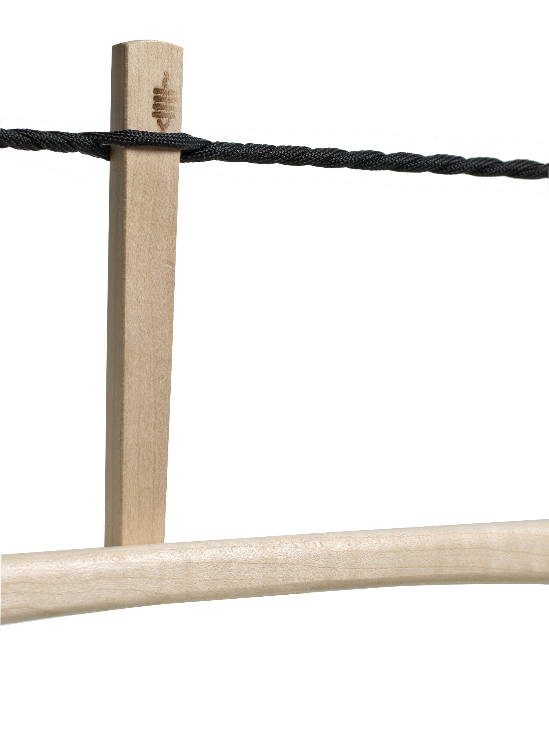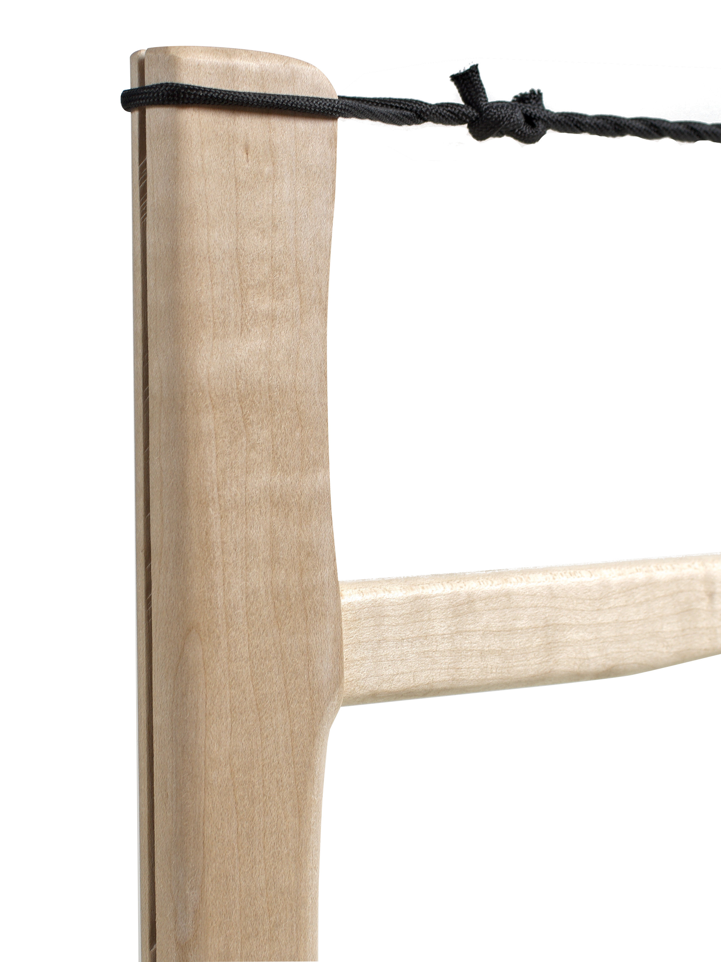 Натяжение производится с помощью скручивания шнура закруткой, как у классической лучковой пилы.