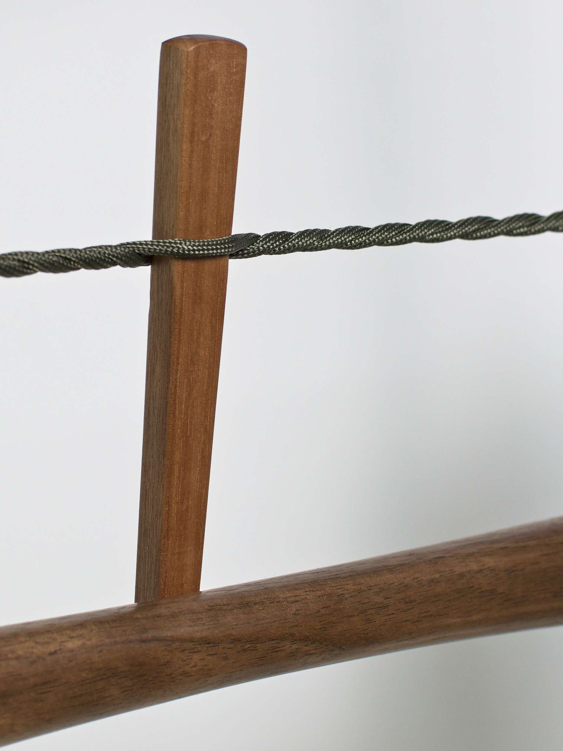 Натяжение производится с помощью скручивания шнура закруткой, как у классической лучковой пилы.