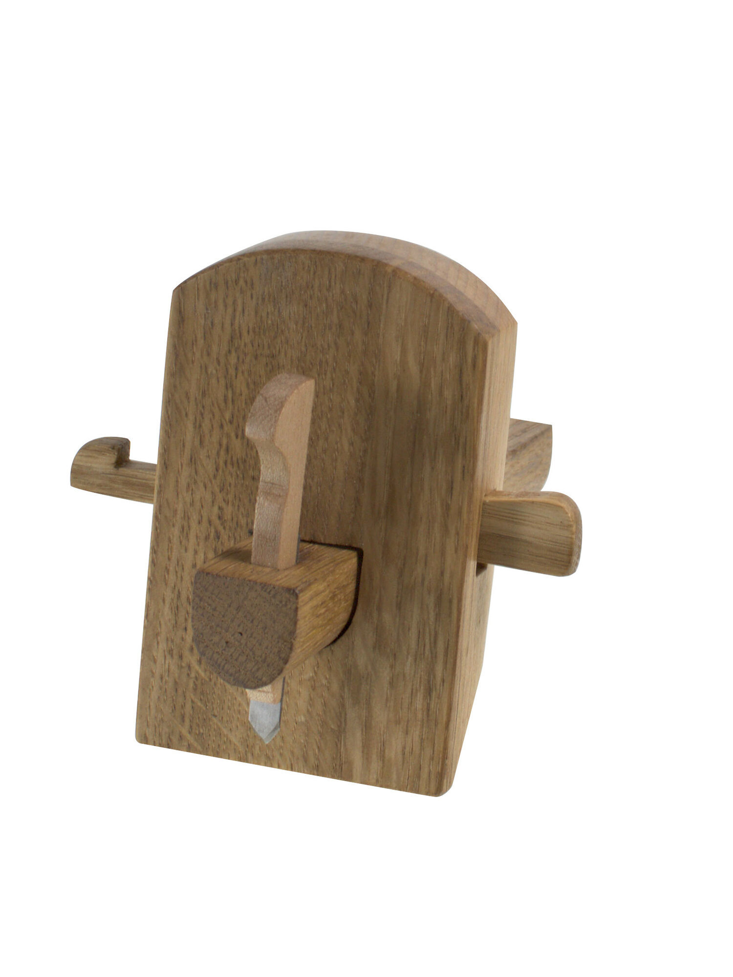 Изготовлен из дуба и бука. Лицевая сторона из дуба, что обеспечивает стабильность поверхности и долговечность, задняя из бука, который не такой пористый как дуб и обеспечивает более гладкие отверстия для клина.