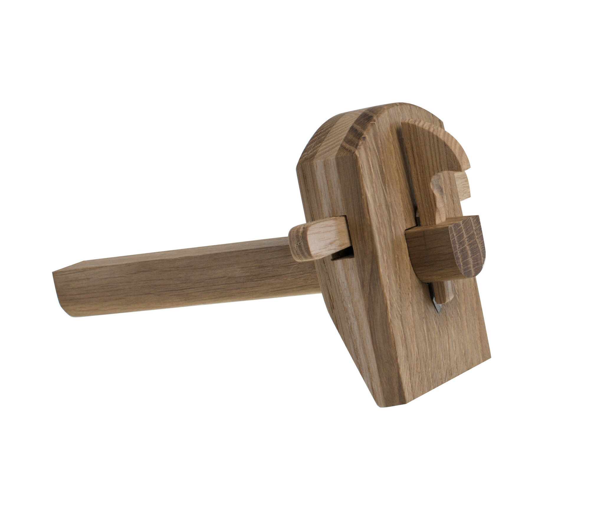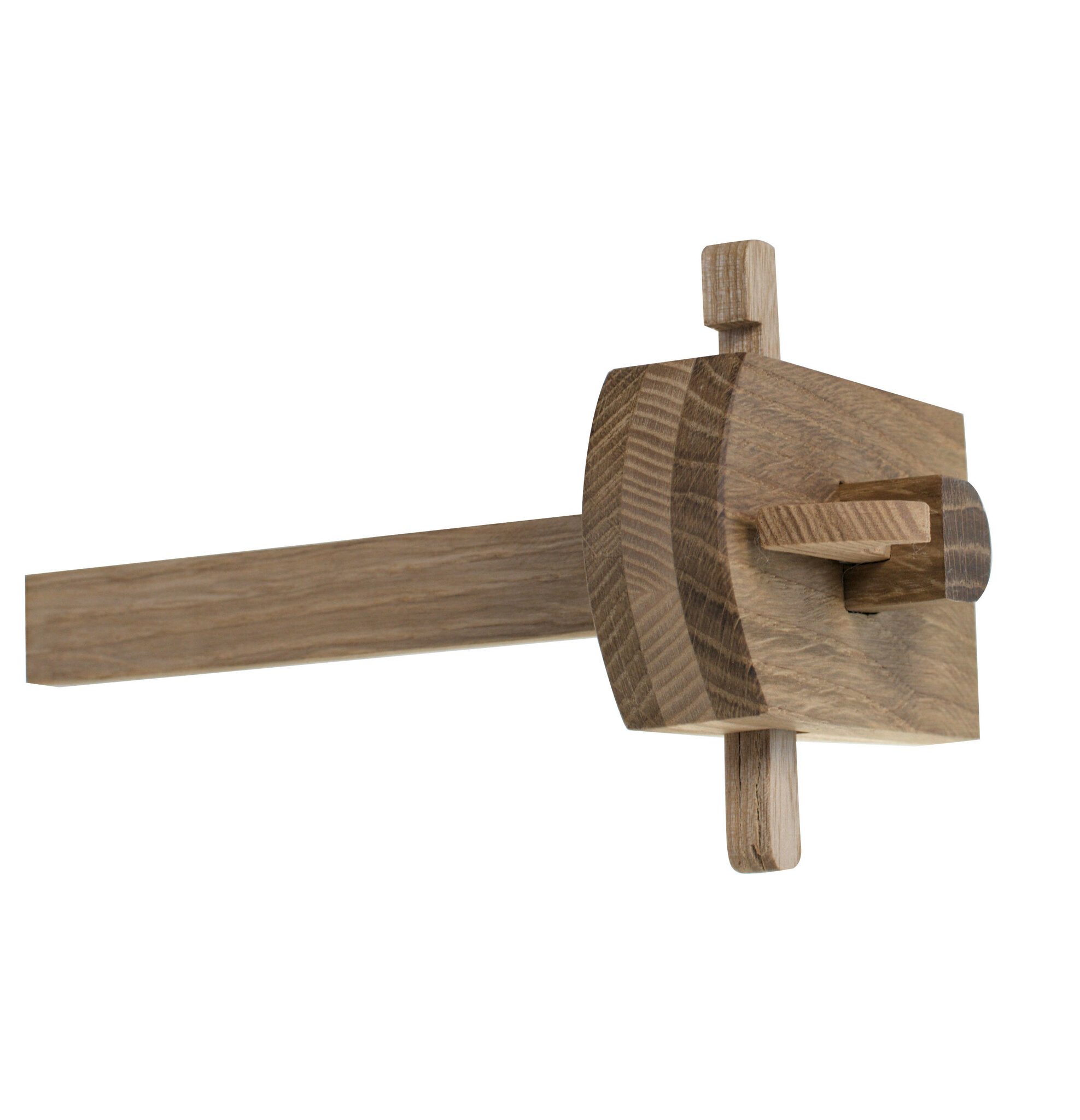 Рейсмус для разметки при столярных работах, японский тип.. Изготовлен из дуба и ясеня. Обеспечивает проведение четких, тонких разметочных линий. Расстояние регулируется с помощью ослабления крепления клином. Удобно и быстро привыкаешь. Можно использовать для отрезания заготовок из тонких планок до 10 мм толщиной. Нож сделан из инструментальной стали, долго не затупляется, в случае необходимости легко затачивается на камне или точильном станке. Длинна стержня 150 мм, что достаточно для абсолютного большинства работ в столярке. Для работы удобно использовать несколько рейсмусов выставленных на нужные расстояния, особенно если работы повторяются. Практически вечен. Высота - 100 мм, ширина - 60 мм, толщина - 24 мм.