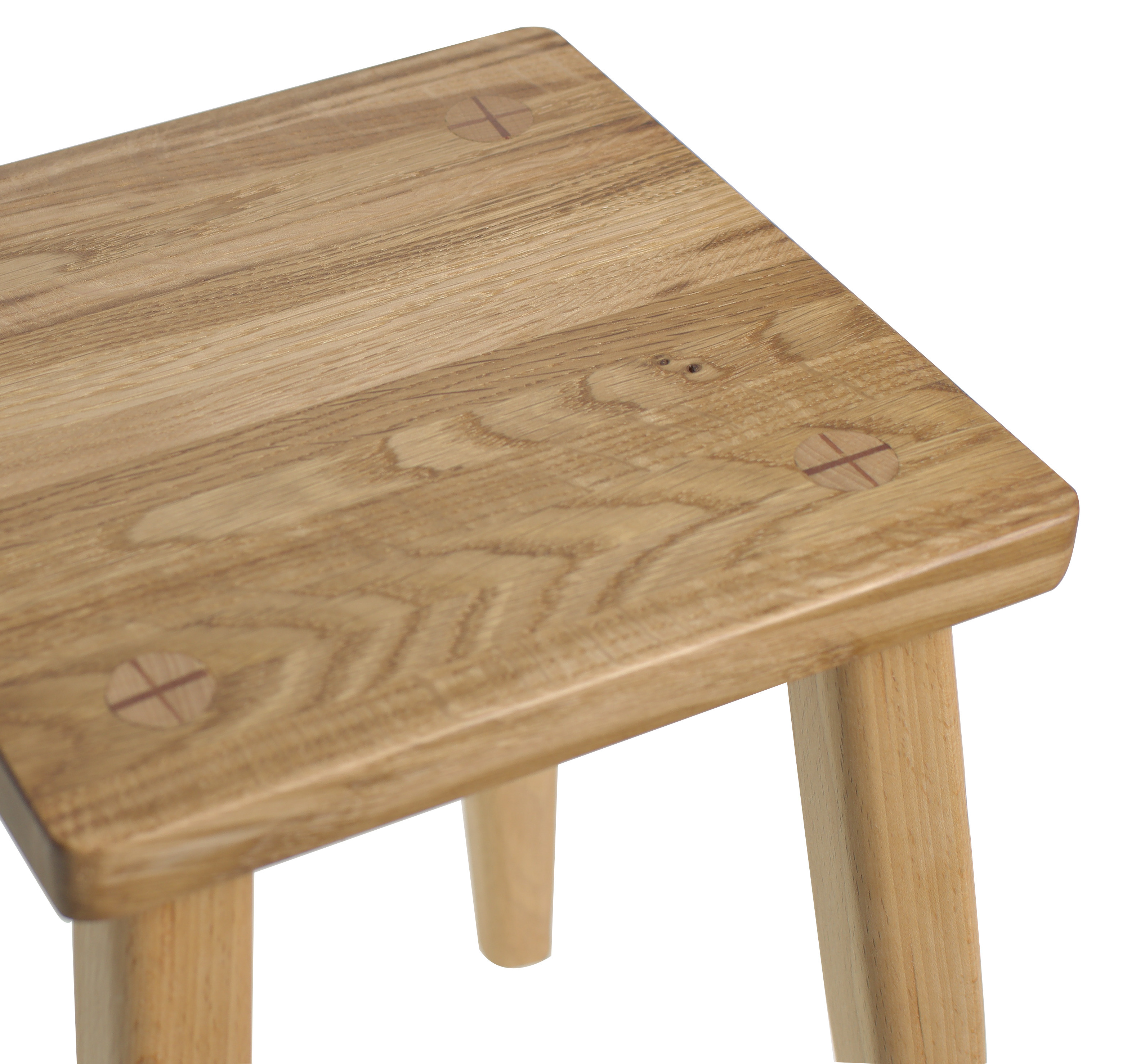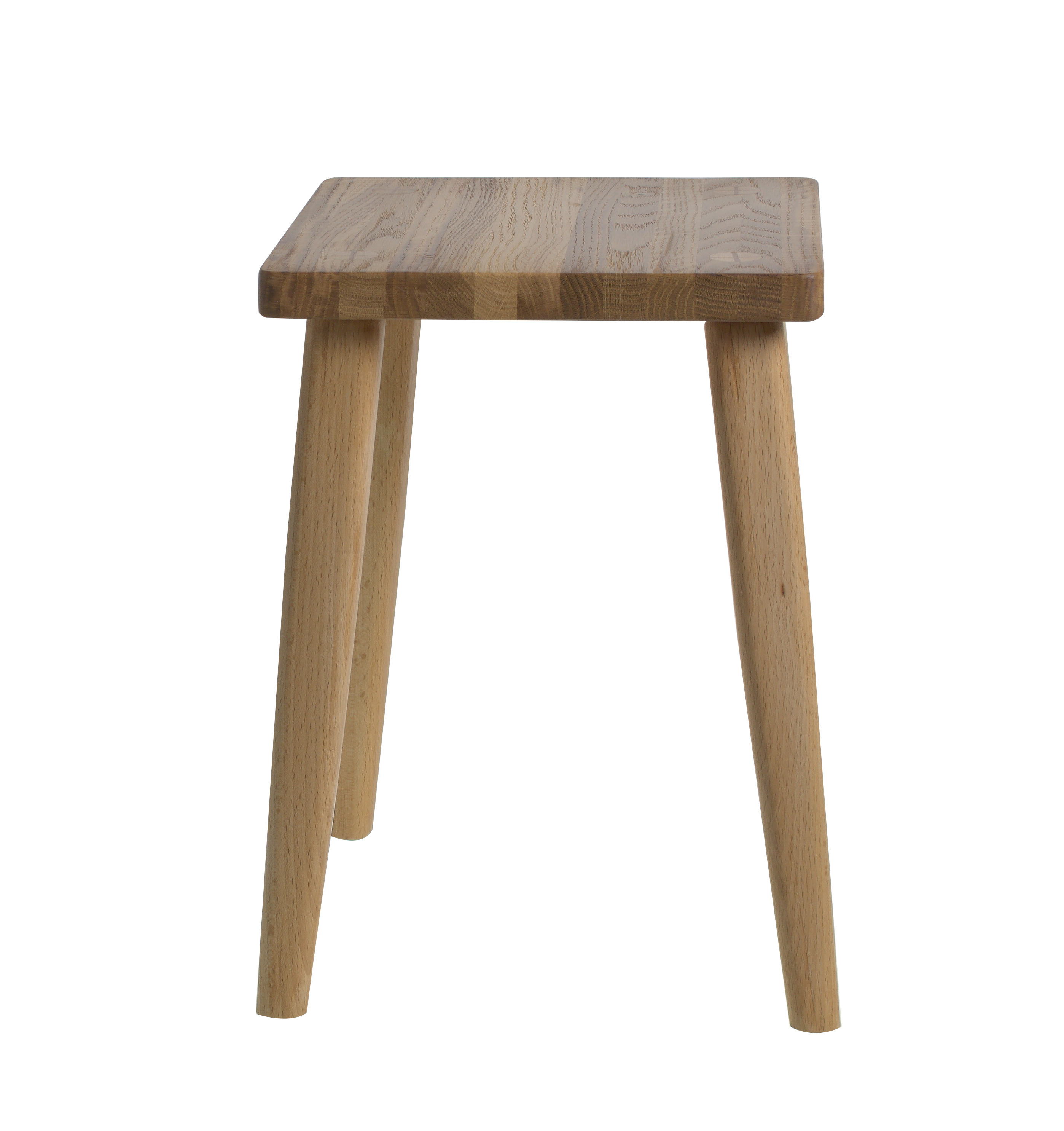 Небольшой табурет из ценных пород дерева: бука и дуба: сиденье из массива дуба, ножки из массива бука.