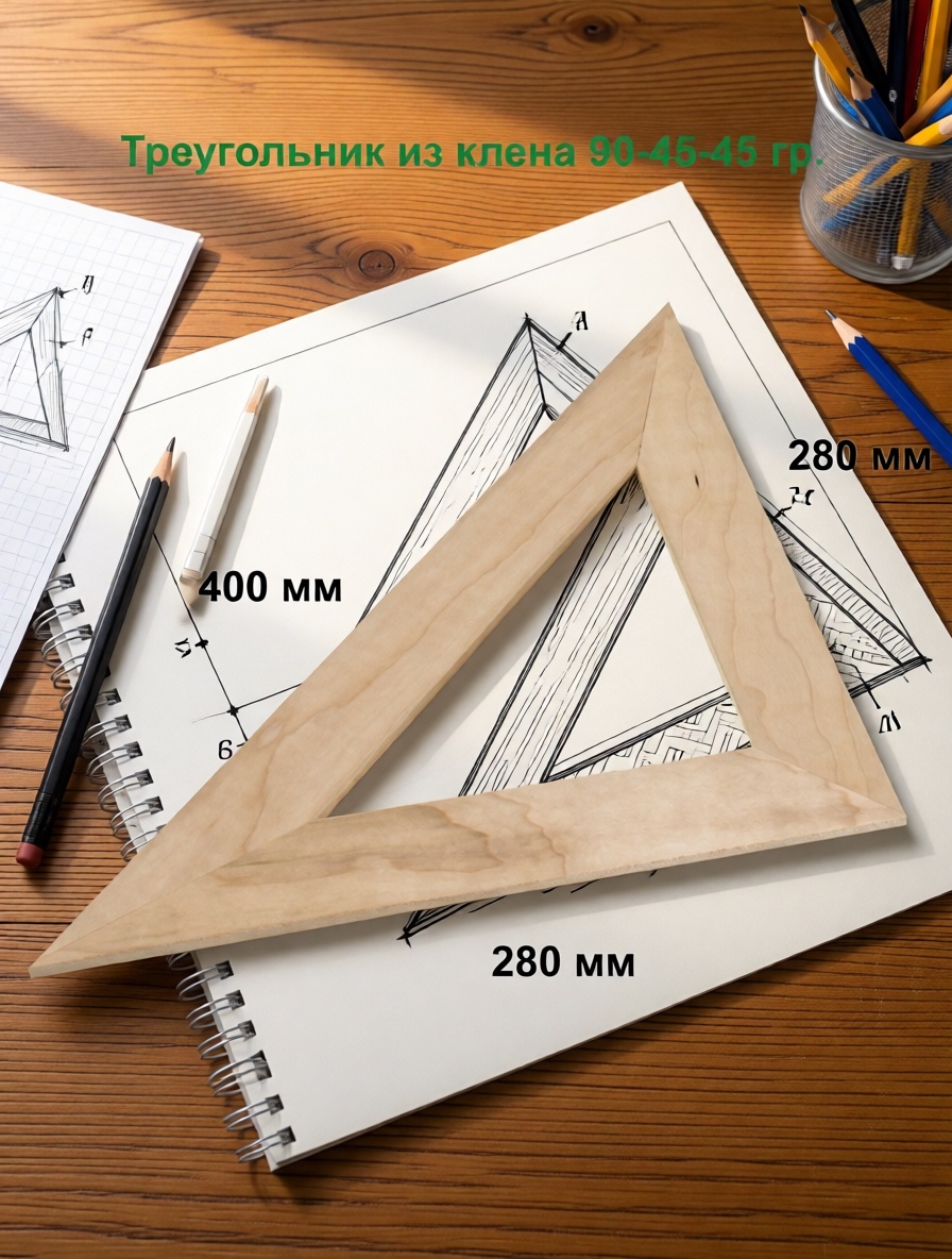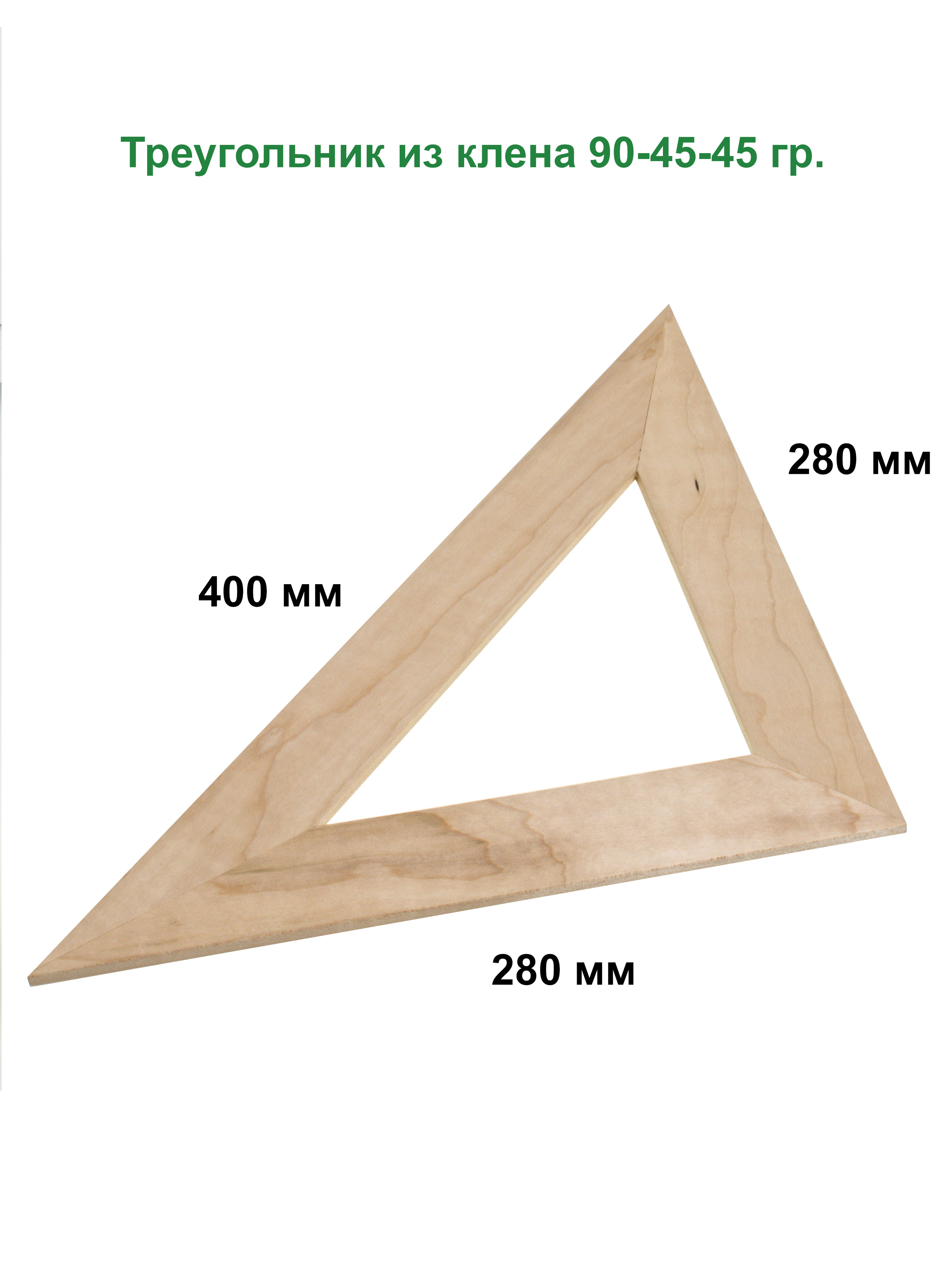 Красивый и прочный треугольник из клена, прямоугольный и равносторонний. Углы 90-45-45 градусов.